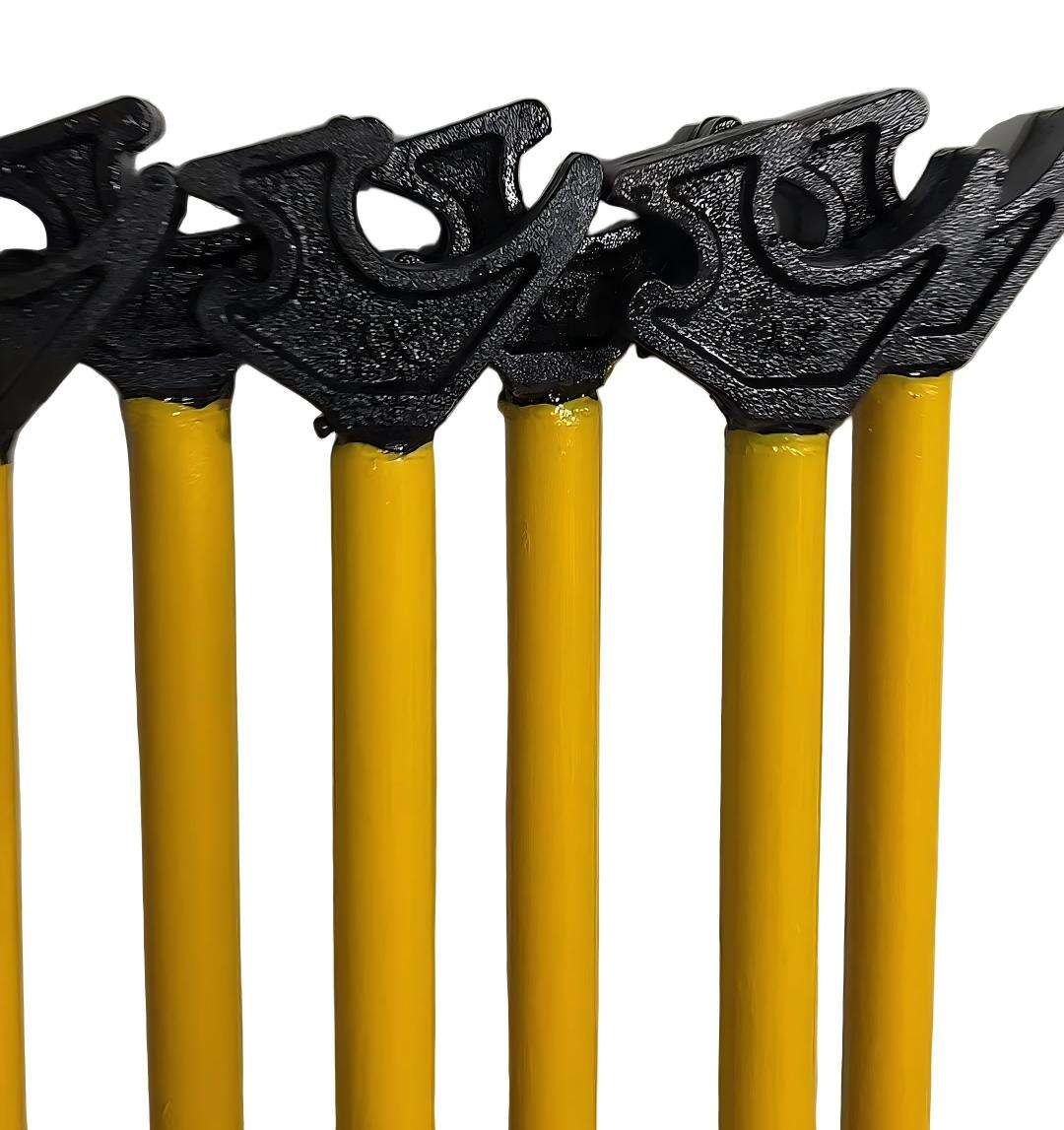 Die hoofliggaam is vervaardig van hoësterkte Q460 legeringstaal, wat deur middel van integrale giet- en presisiesnyselprosesse gevorm word, en ondergaan 'n streng hittebehandelingproses. Die treksterkte bereik ≥550MPa, en dit kan die kragtige impak van swaar rolmateriaal weerstaan sonder vervorming of breuk. Die oppervlak is behandel met galvanisering + anti-korrosie-laaie, wat 'n dubbele anti-korrosiebarrière vorm wat doeltreffend roes, oksidasie en korrosie weens reën, sneeu, stof en chemiese media in die buitelugomgewing weerstaan, en sodoende langtermyn stabiele gebruik verseker.