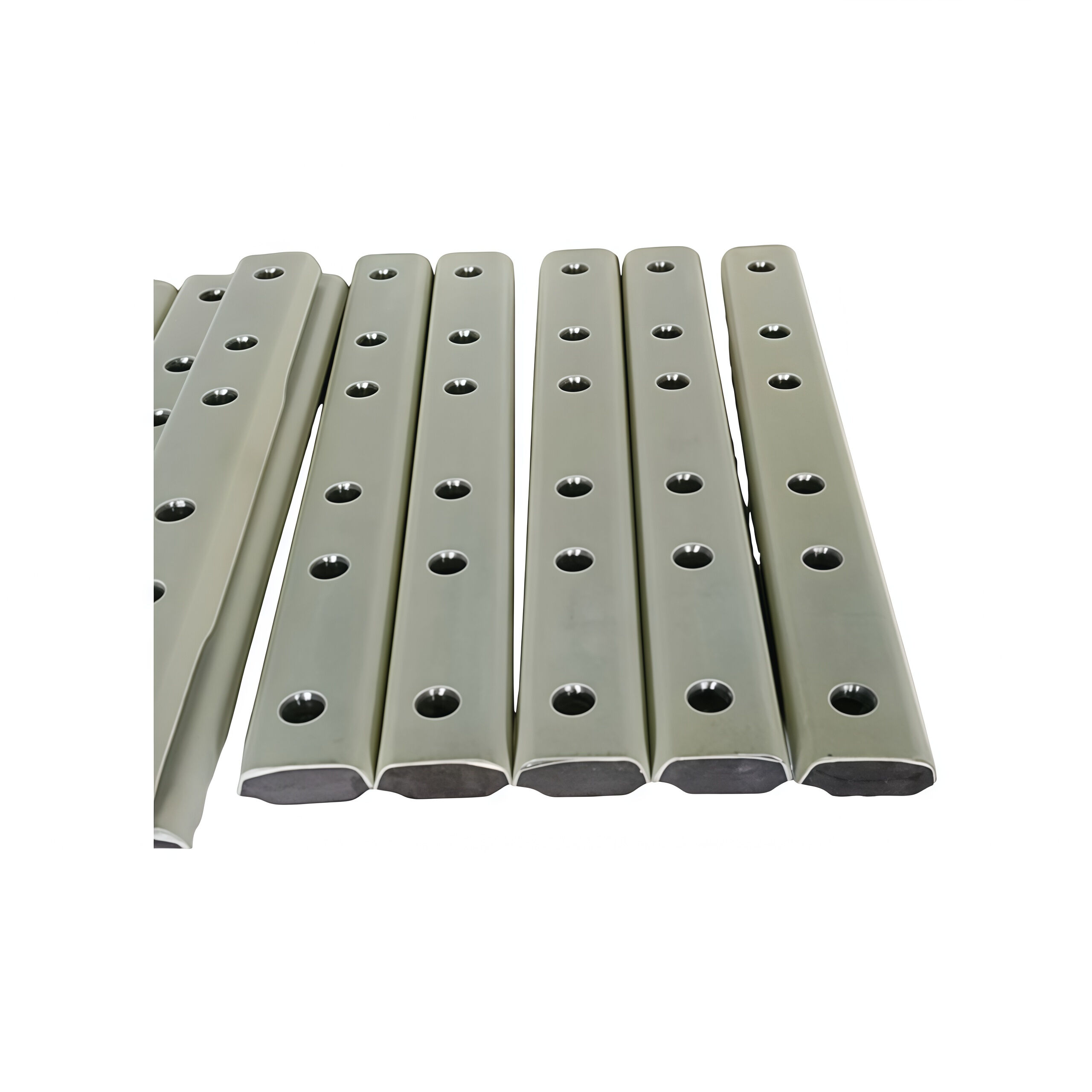 Il materiale della piastra è solitamente acciaio 55#, lo spessore è di 55mm, la sezione trasversale è a forma di sezione variabile, il centro è spesso e i due lati sono sottili, il che è più in linea con le condizioni di stress della giunzione. Le due superfici inclinate esterne della piastra sono formate da fresatura in centro di lavorazione CNC e si adattano perfettamente alle due inclinazioni della mascella superiore e inferiore della vita del binario.