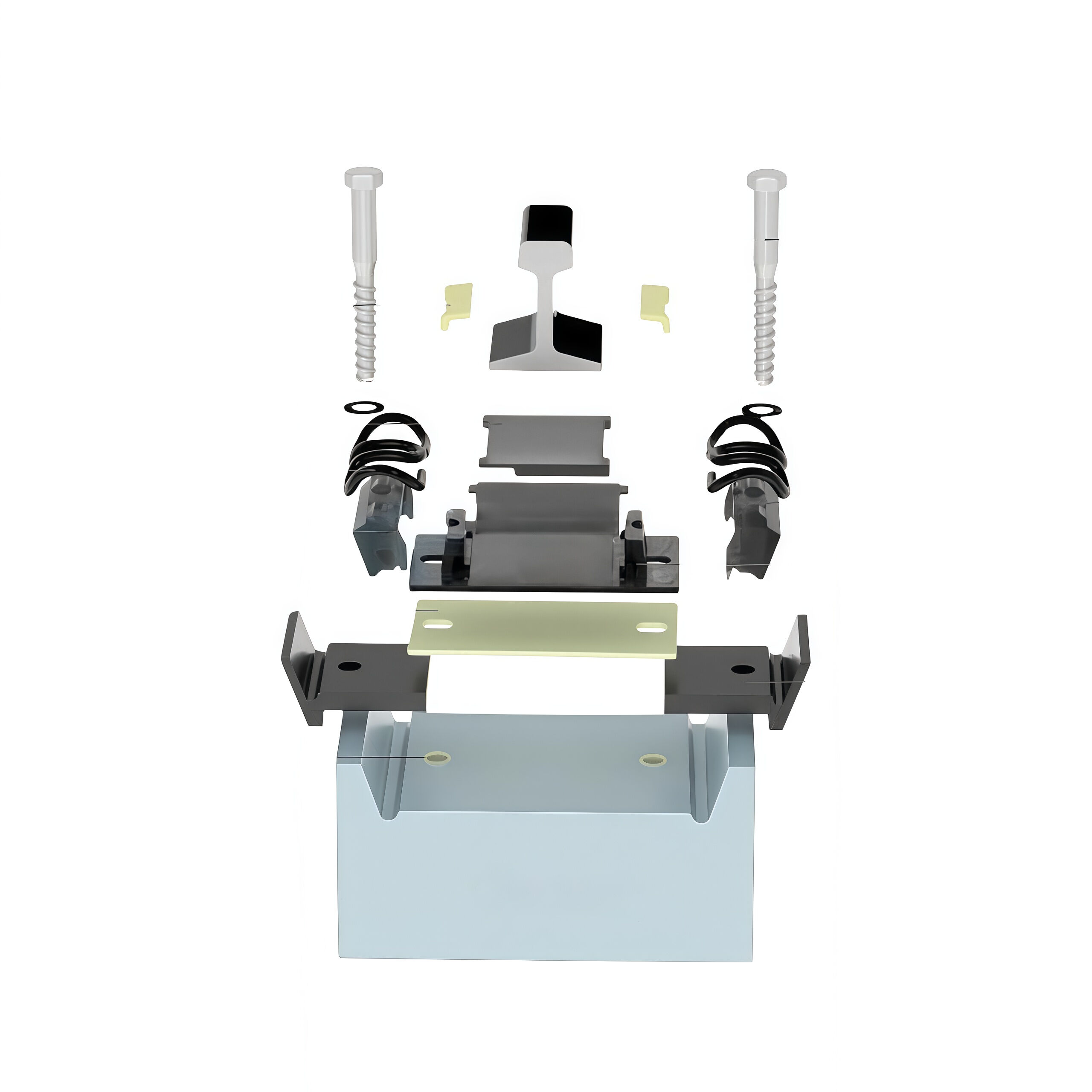 WJ-8 tvirtinimo detalė yra neatsidarančio peties sustabdymo tvirtinimo detalė, naudojama be žvyro bėgių didelio greičio geležinkeliuose Kinijoje. Ji susideda iš spiralinių smeigų, plokščios poveržlės, spyruoklinės juostos, izoliuoto matavimo bloko, matavimo pertvaros, po bėgiu esančios amortizacinės plokštės, geležinės amortizacinės plokštės, elastinės amortizacinės plokštės po geležine amortizacine plokšte ir įmontuoto korpuso ir kt. Be to, ji taip pat apima po bėgiu esančią smulkios reguliavimo plokštę ir geležinę amortizacinę plokštę žemyn didelės amortizacinės plokštės, kad atitiktų aukščio ir žemumo reguliavimo poreikius.